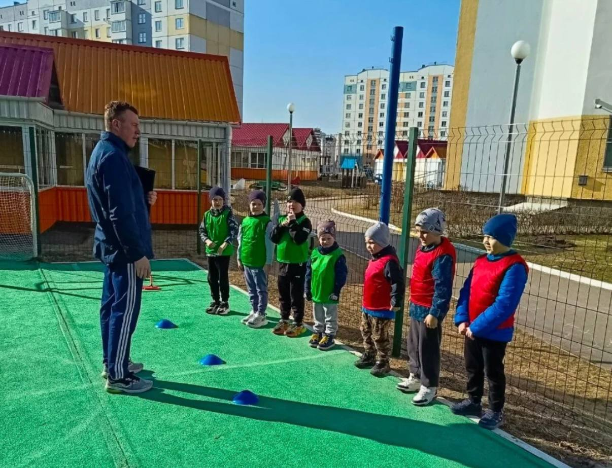 В рамках областного творческого проекта «Приобщение детей дошкольного возраста к систематическим занятиям спортом через освоение технических, тактических и практических навыков игры в футбол» прошла тренировочная игра сборной команды «Василёк» под руководством тренера ФК «Витебск» Владимира Александровича Краснова. Продолжая активно помогать юным спортсменам, Владимир Александрович познакомил дошколят-футболистов с тактической доской. Тренер объяснил, какую важную роль этот инструмент играет в подготовке команд: он позволяет наглядно прорабатывать стратегии и тактику, а также видеть, как игроки должны взаимодействовать на поле.
