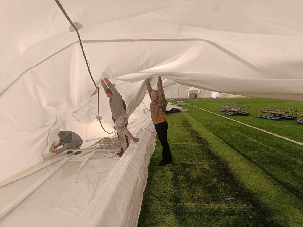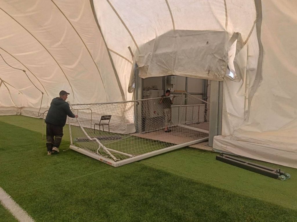️С наступлением устойчивых положительных температур продолжены работы по восстановлению Воздухоопорного футбольного манежа. На конечном этапе консультативную помощь окажут специалисты словенской компании, производившие монтаж манежа.
